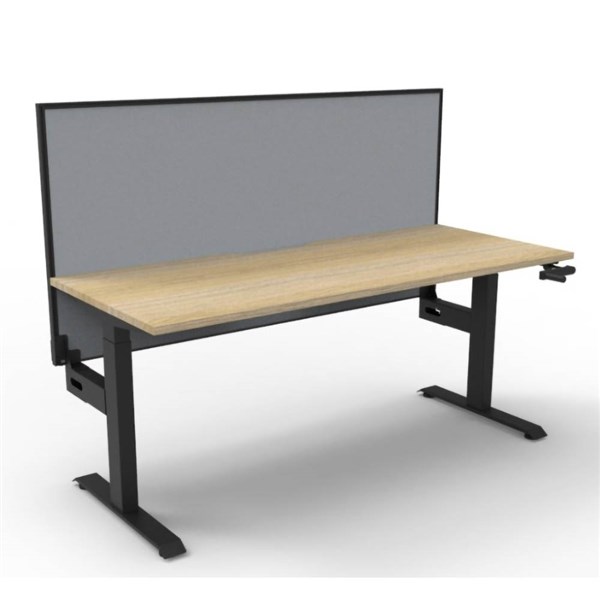 RAPIDLINE BOOST CRANK SINGLE SIDED WORKSTATION WITH SCREEN 1500 X 750 X 705MM NATURAL OAK TOP AND BLACK SATIN FRAME