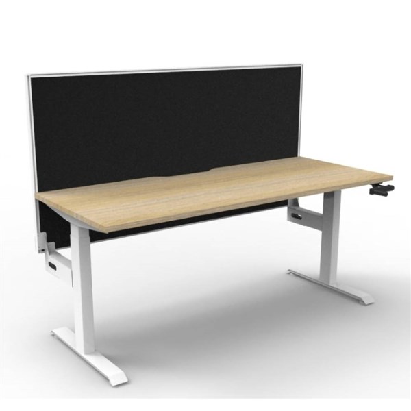 RAPIDLINE BOOST CRANK SINGLE SIDED WORKSTATION WITH SCREEN 1500 X 750 X 705MM NATURAL OAK TOP AND WHITE SATIN FRAME
