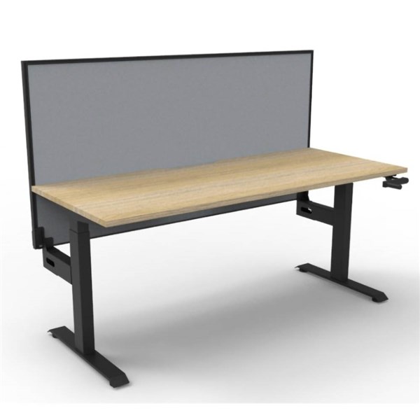 RAPIDLINE BOOST CRANK SINGLE SIDED WORKSTATION WITH SCREEN 1800 X 750 X 705MM NATURAL OAK TOP AND BLACK SATIN FRAME