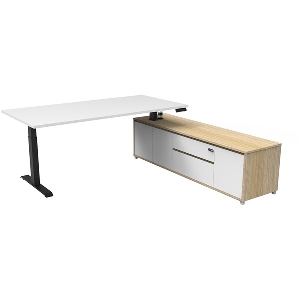 RAPIDLINE BOOST PLUS EXECUTIVE HEIGHT ADJUSTABLE WORKSTATION RHC 1800 X 750MM NATURAL WHITE/BLACK