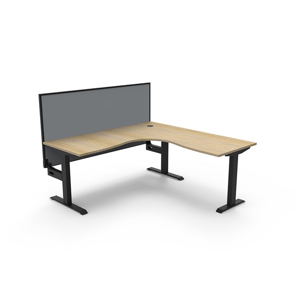 RAPIDLINE BOOST STATIC CORNER WORKSTATION WITH SCREEN 1800 X 1800MM NATURAL OAK TOP / BLACK FRAME / GREY SCREEN