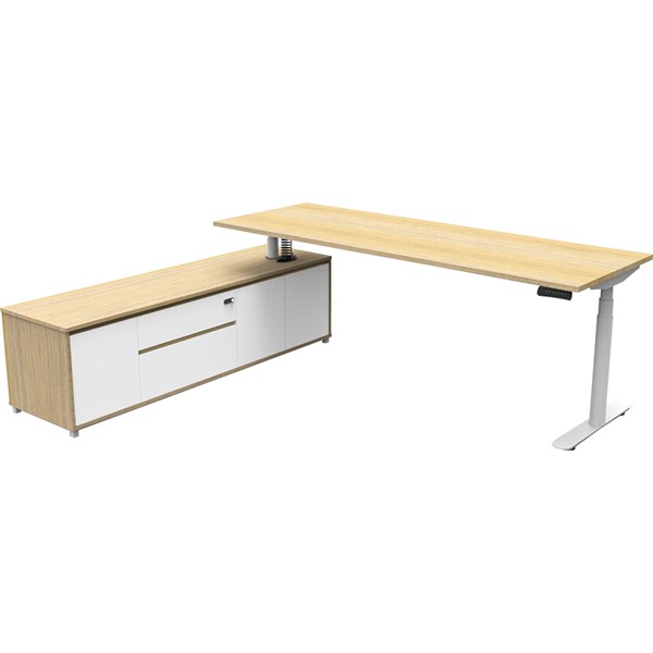 RAPIDLINE HALO PLUS EXECUTIVE HEIGHT ADJUSTABLE WORKSTATION LHC 2100 X 750MM NATURAL OAK/WHITE