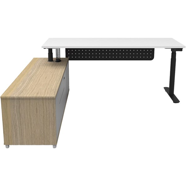 - The integrated side cabinet provides ample storage with drawers and cupboards, enhancing workspace organisation and keeping your essentials within easy reach