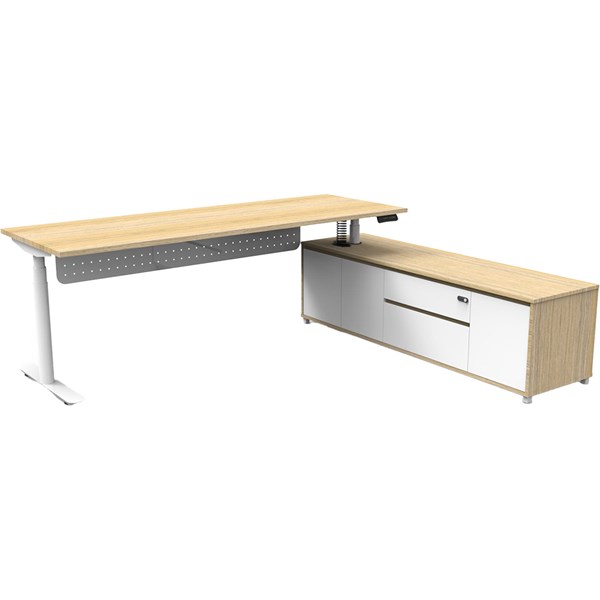 RAPIDLINE HALO PLUS EXECUTIVE HEIGHT ADJUSTABLE WORKSTATION WITH MODESTY PANEL RHC 2100 X 750MM NATURAL OAK/WHITE