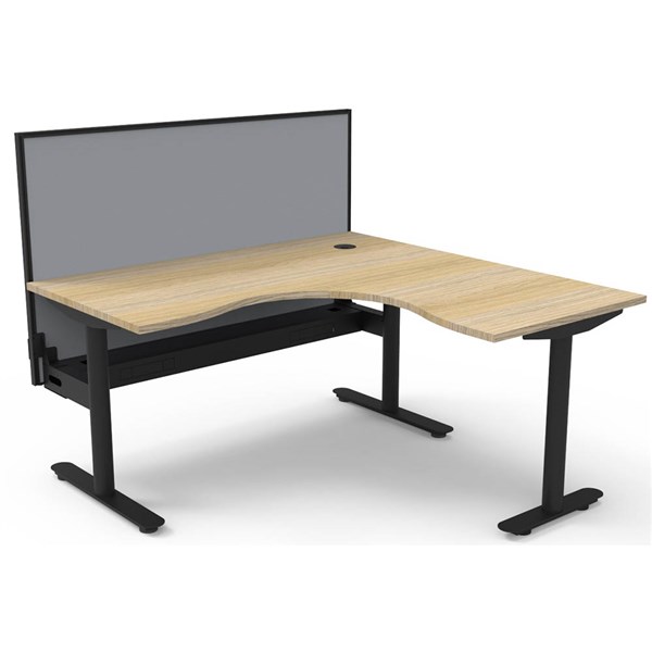 RAPIDLINE HALO STATIC CORNER WORKSTATION WITH SCREEN AND CABLE TRAY 1500 X 1500MM NATURAL OAK/BLACK