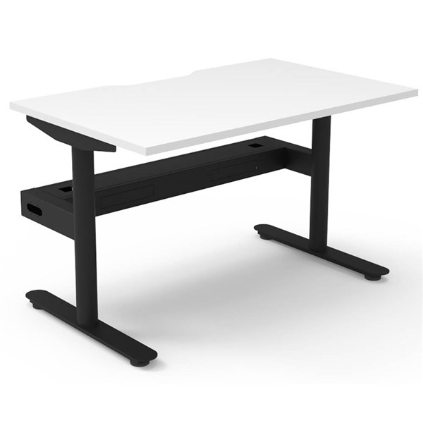- The table top is designed with a 50mm scallop cut-out for efficient cable management, while the fully ducted cable tray ensures cords stay organised
