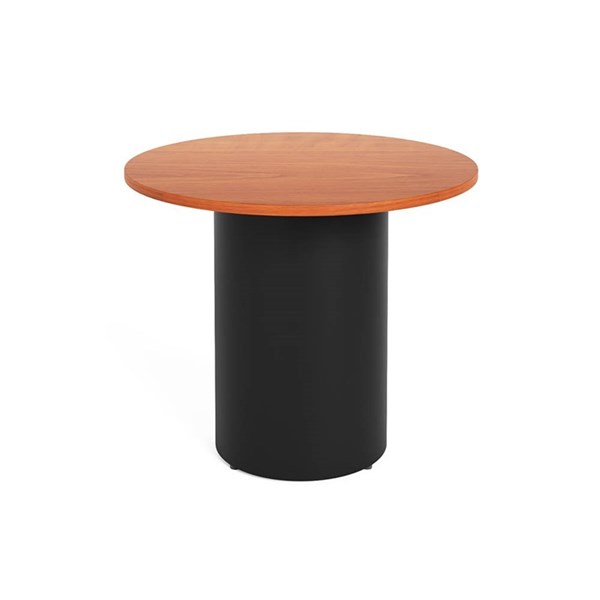 RAPIDLINE ROUND DRUM BASE TABLE 900 X 730MM CHERRY TOP AND BLACK P/C FRAME