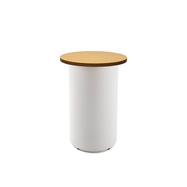 RAPIDLINE ROUND HIGH BAR TABLE DRUM BASE 600MM X 1050MM BEECH TOP AND WHITE P/C FRAME