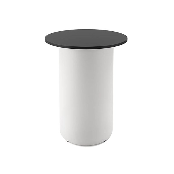 RAPIDLINE ROUND HIGH BAR TABLE DRUM BASE 900MM X 1050MM BLACK TOP AND WHITE P/C FRAME