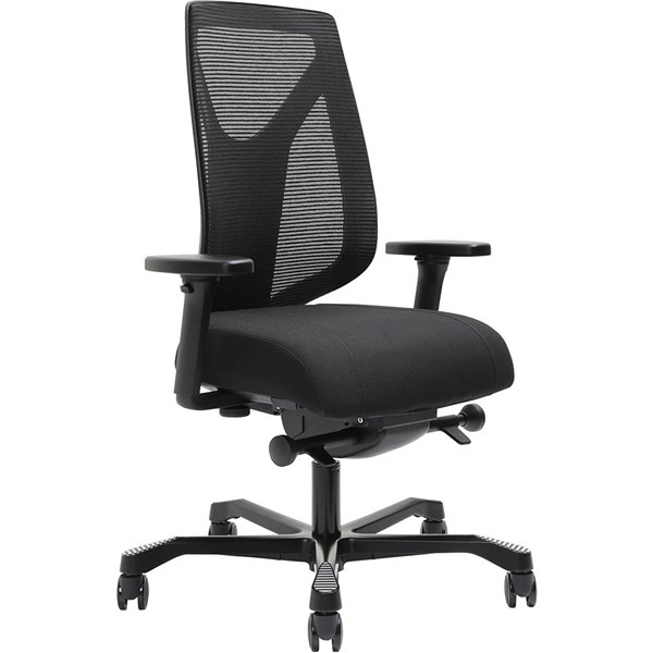 SERATI MESH HIGH BACK CHAIR PRO-CONTROL SYNCHRO ADJUSTABLE ARMREST BLACK ALUMINIUM BASE FOOTPLATES GABRIEL FIGHTER