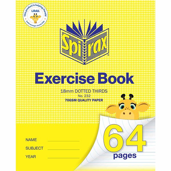 SPIRAX 232 EXERCISE BOOK 18MM DOTTED THIRDS 64 PAGES 225 X 175MM