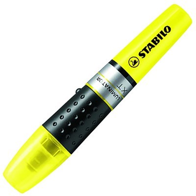 Stabilo luminators ergonomic shape tapering into the writing direction. Visible ink system with extremely large ink capacity - highlights for up to 500 metres