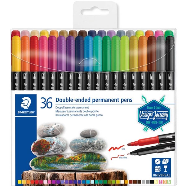 - Wallet containing 36 double-ended permanent pens in assorted colours
