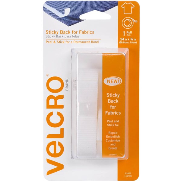 VELCRO Brand Sticky Back for Fabrics provides permanent bond to fabrics with no sewing, gluing or ironing required