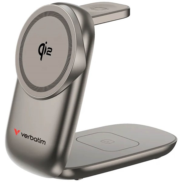 VERBATIM 3-IN-1 QI2 WIRELESS CHARGING DOCK METALLIC GRAY