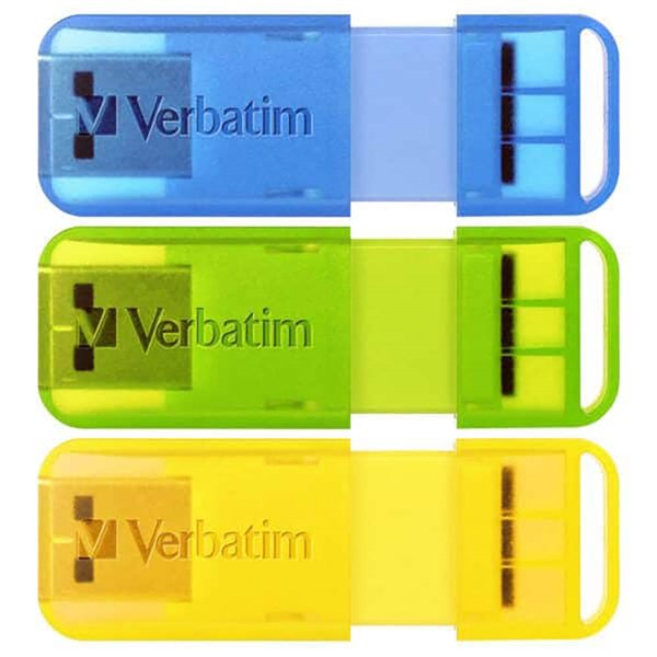 VERBATIM POP UP USB 2.0 FLASH DRIVE 32GB ASSORTED BRIGHT COLOURS PACK 3