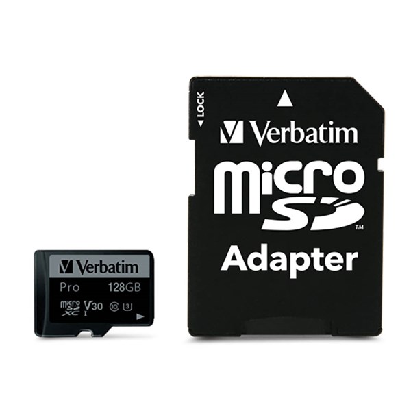 The Verbatim Pro Micro SD Class 10 128GB Black (47044A) is a high-performance microSD memory card designed for storing photos, videos, apps, and data on devices like smartphones, tablets, action cameras, drones, and more