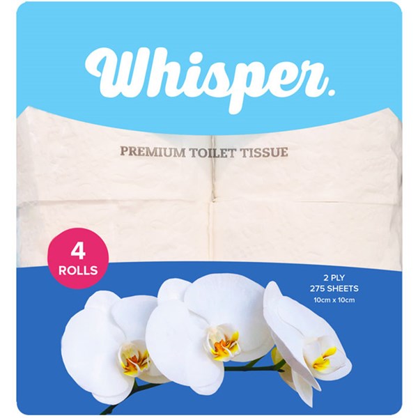 - A quality 2ply toilet roll with 275 sheets, wrapped conveniently in four rolls per pack