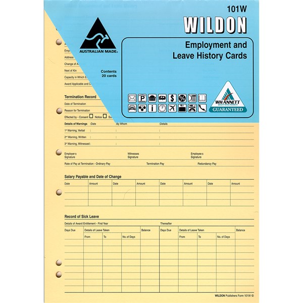 WILDON EMPLOYMENT & LEAVE HISTORY CARD #101W