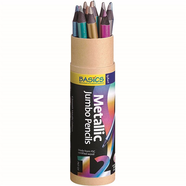 ZART BASICS METALLIC JUMBO PENCILS ASSORTED PACK 12