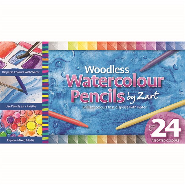 ZART WOODLESS WATERCOLOUR PENCILS ASSORTED PACK 24
