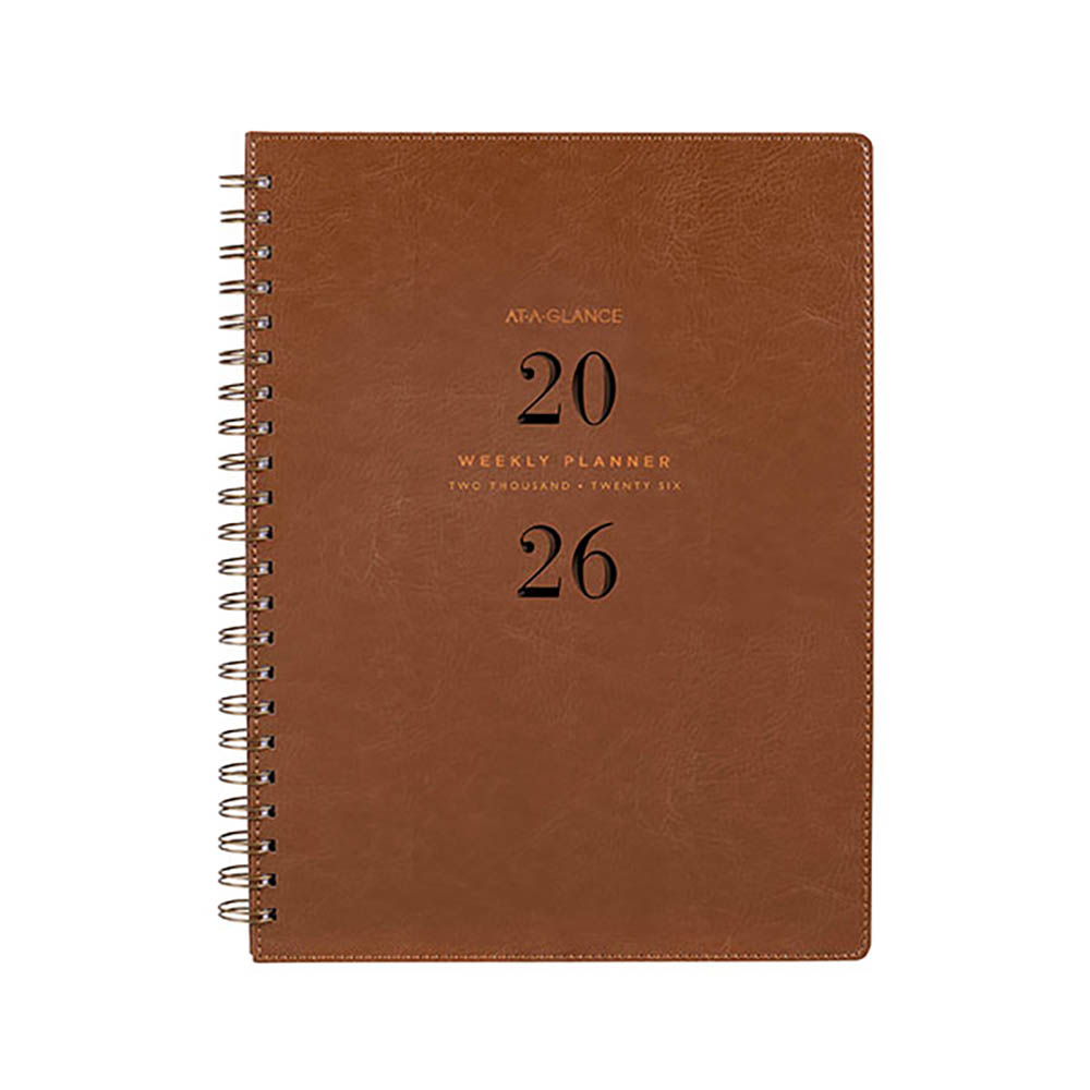 The AT-A-GLANCE Signature planner range offers unique genderneutral cover material's paired with antique bronze twin wire binding to give a sophisticated look