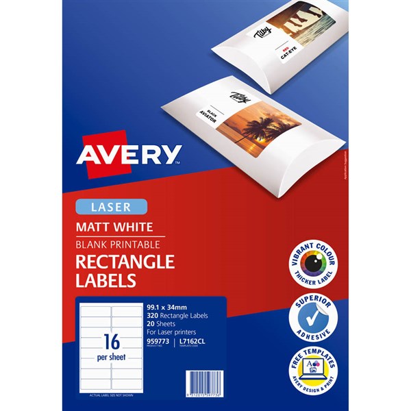AVERY 959773 L7162CL MULTI-PURPOSE PHOTO QUALITY LABEL LASER 16UP MATT WHITE PACK 20