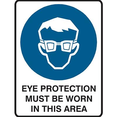 BRADY MANDATORY SIGN EYE PROTECTION MUST BE WORN IN THIS AREA 450 X 300MM POLYPROPYLENE