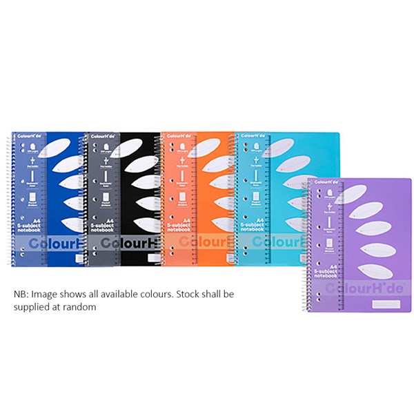 COLOURHIDE NOTEBOOK 5 SUBJECT 250 PAGES A4 ASSORTED COLOUR