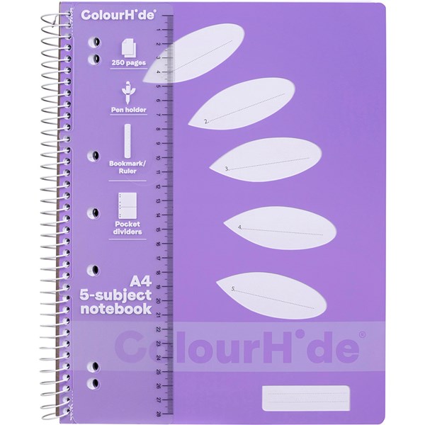 COLOURHIDE NOTEBOOK 5 SUBJECT 250 PAGES A4 LAVENDER