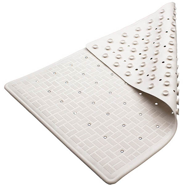The Compass small rubber bath mat features a suction cup base that provides extra stability