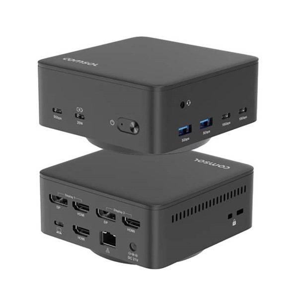 The Comsol Universal Triple 4K Docking Station Black DS34HDVS is designed to expand connectivity for USB-C enabled laptops, tablets, and PCs by connecting multiple peripherals and displays through a single cable