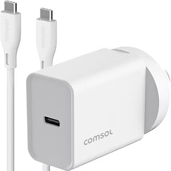 The Comsol 20W USB-C Wall Charger with 1.5m USB-C to USB-C Cable (AC20KCCW) is the perfect charging solution for fast and efficient power delivery to your USB-C devices