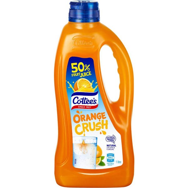 Cottee's Cordial Orange Crush flavour comes in a 1 litre bottle, perfect for adding to water and enjoying at home, in the office or at events and parties