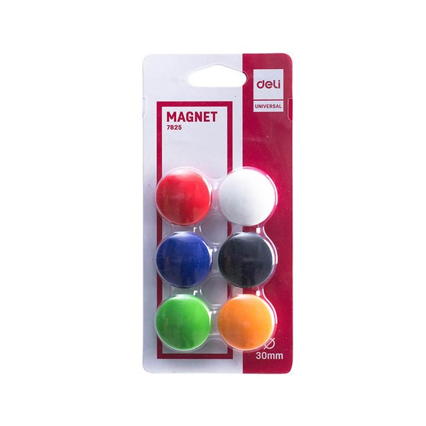 DELI MAGNETIC BUTTONS 30MM ASSORTED PACK 6
