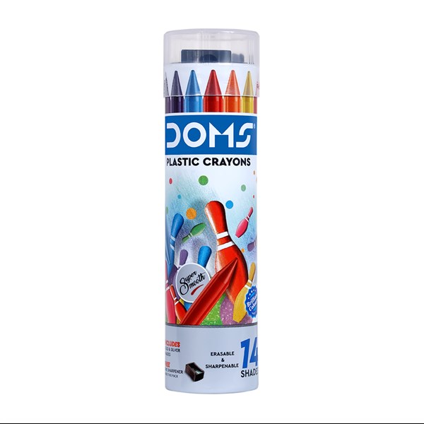 DOMS PLASTIC CRAYONS TIN PACK 14 COLOURS