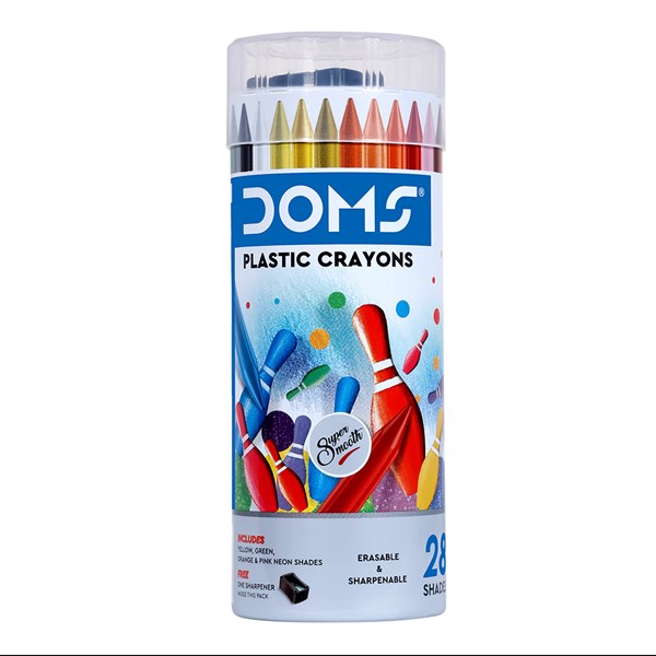 DOMS PLASTIC CRAYONS TIN PACK 28 COLOURS