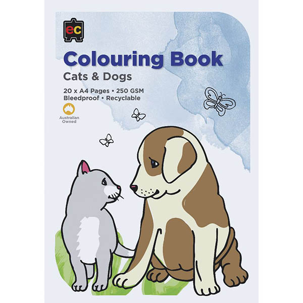 EDUCATIONAL COLOURS CATS AND DOGS COLOURING BOOK 250GSM 20 PAGE A4