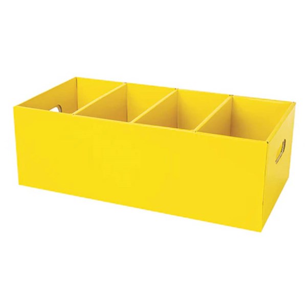 - This extra strong and durable box with four compartments features convenient carry handles and is perfectly sized for storing and organising books, folders, readers or other resources