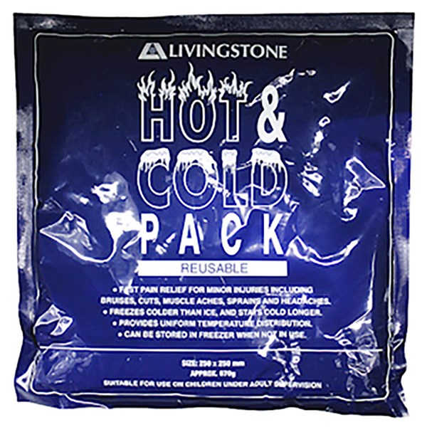 Livingstone Hot and Cold Pack relieves pain and swelling of minor injuries bruises cuts muscle aches and strains plus sprains and headaches