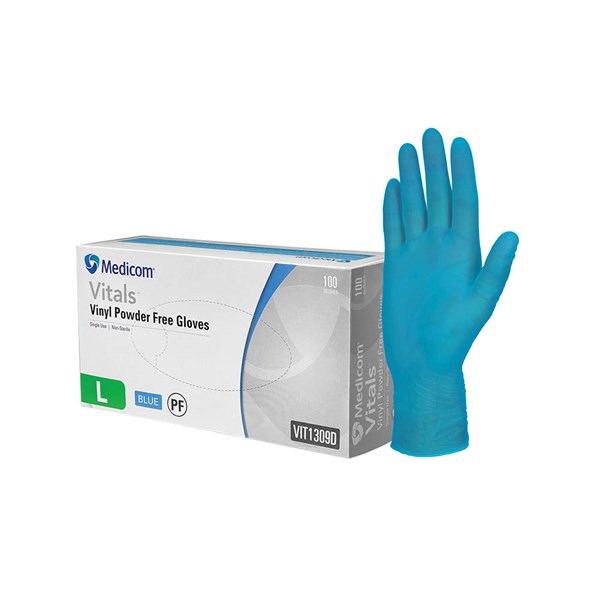 MEDICOM VITALS VINYL POWDER FREE GLOVES BLUE SMALL PACK 100