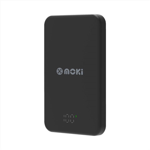 Experience the convenience of wireless charging on the go with the Moki magnetic wireless power bank