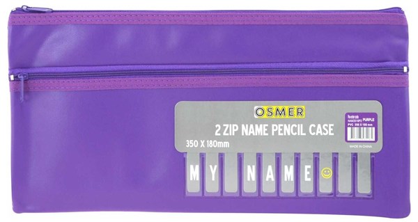 NAME PENCIL CASE 2 ZIP LARGE 350 X 180MM PURPLE