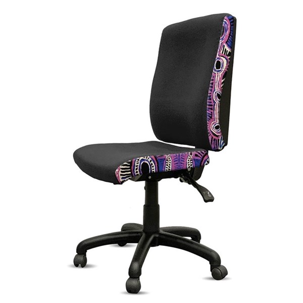 • A unique commercial fabrics designed by Nelly Patterson (Indigenous Artist) combined with K2 black fabric to upholster the chair
