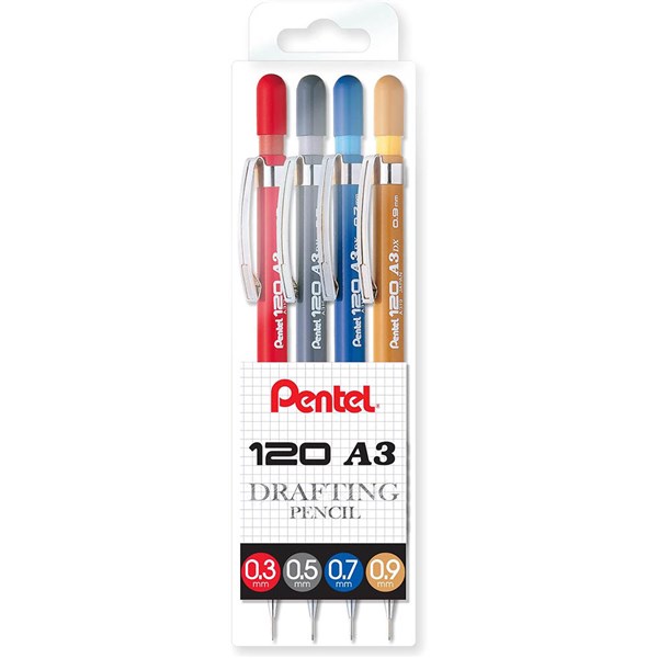 PENTEL MECHANICAL PENCIL ASSORTED SIZES AND COLOUR PACK 4