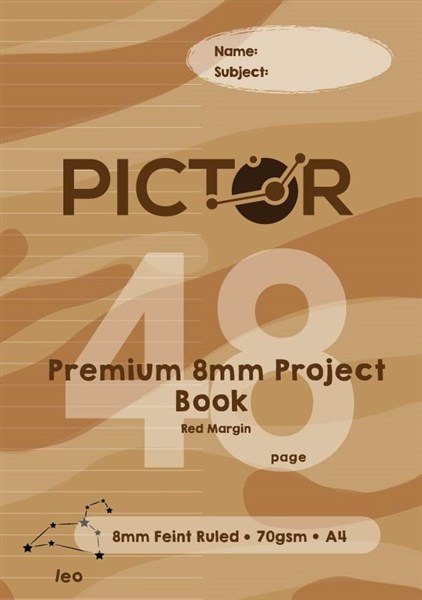 PICTOR PREMIUM A4 48 PAGE PROJECT BOOK 8MM PLAIN/RULED 70GSM LEO