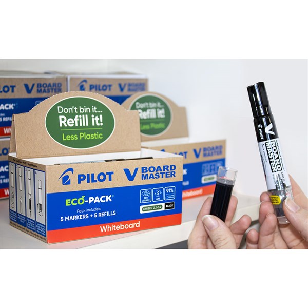 PILOT BEGREEN V BOARD MASTER WHITEBOARD MARKER CHISEL TIP BLACK ECO PACK 5 WITH 5 REFILLS