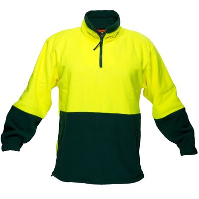 PRIME MOVER MF115 HI-VIS POLAR FLEECE JUMPER LONG SLEEVE 1/4 ZIP 2-TONE YELLOW GREEN LARGE