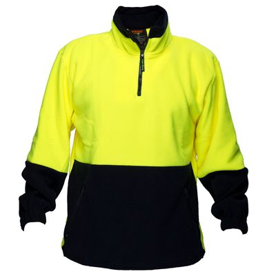 PRIME MOVER MF115 HI-VIS POLAR FLEECE JUMPER LONG SLEEVE 1/4 ZIP 2-TONE YELLOW NAVY 5XL