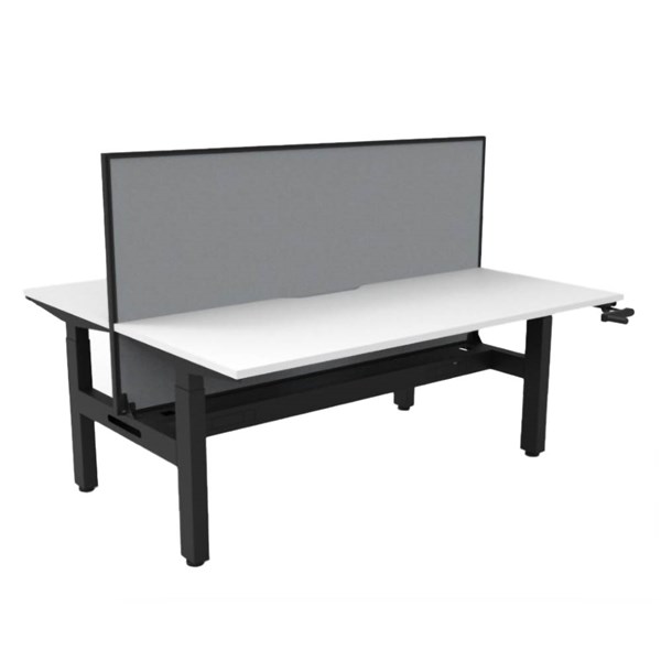 RAPIDLINE BOOST CRANK BACK TO BACK WORKSTATION WITH CABLE TRAY AND SCREEN 1500 X 1500 X 705MM NATURAL WHITE TOP AND BLACK SATIN FRAME